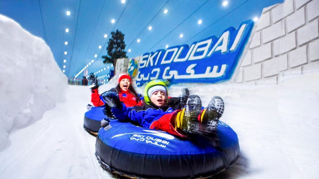 Ski Dubai is an indoor ski resort with 22,500 square meters of indoor ski area. The park maintains the temperature of -1 degree Celsius to 2 degrees Celsius throughout the year. It is a part of the Mall of the Emirates, one of the largest shopping malls in the world, located in Dubai, United Arab Emirates.