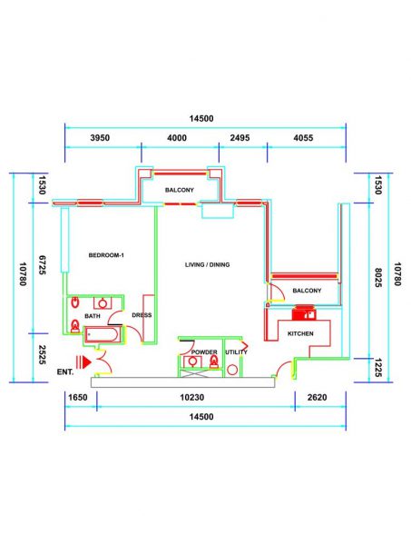 * Area Size: 1,105 square feet